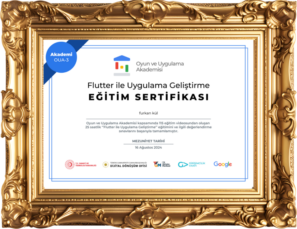 Adım Furkan, profesyonel bir mobil uygulama geliştiricisi ve UI/UX tasarımcısıyım. Bilgisayarlarla küçük yaşlarda tanıştım ve bu alandaki yolculuğuma tutku ile devam ediyorum.